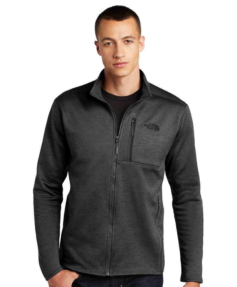 11-oz, 96/4 recycled polyester/elastane. Stretch peached-face fleece with brushed interior. Vislon® centre front zipper. Reverse coil zippered chest and hand pockets. Micro-elastic binding at back collar and back hem. The North Face® logo on left chest. Modern fit. BENEFITS. Breathable: Mid-weight fabrics that help regulate body temperature. Stretch: This product contains materials with stretch that allows for a greater range of mobility. Recycled content: Made from post-consumer, recycled content. Due to the nature of polyester, special care must be taken throughout the decoration process. Please refer to the product size spec PDF file for more details.