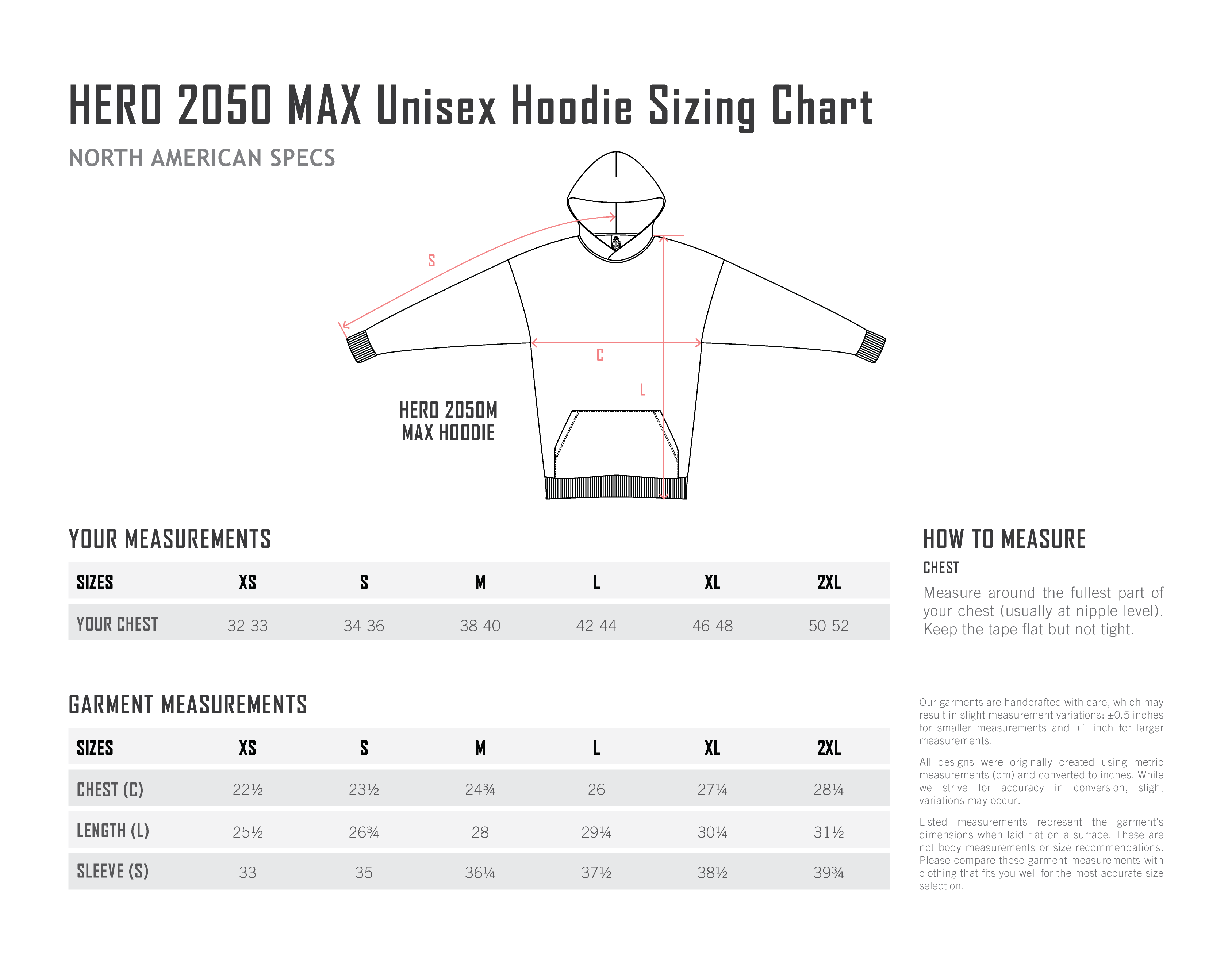 Chest (C) 22.5 in 23.5 in 24.75 in 26 in 27.25 in 28.25 in